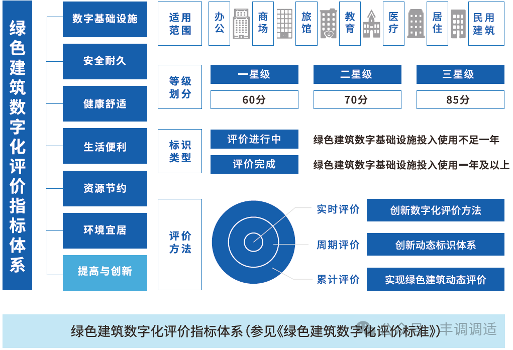 这是数字化评价的“骨架”。通过四大核心技术的部署,实现从数据采集到价值输出的闭环: 1. 感知层(IoT):大楼的“神经末梢” 部署覆盖全域的智能传感器网络是第一步。例如,在建筑外墙安装能耗计量传感器;在办公区安装人体感应与温湿度传感器;在机房安装设备振动传感器。确保所有绿色性能数据“可测、可感、可追溯” 。 2. 计算层(大数据与 AI):会思考的“大脑” 数据采集上来后,需要通过算法进行增值处理。 预测能力:利用AI算法(如LSTM)预测未来1个月的能耗趋势 。 诊断能力:机器学习能识别“能耗异常波动”的根源——例如,系统能自动发现某楼层的空调阀门故障导致的能耗突增 。 3. 建模层(数字孪生):可视化的“镜像” 构建建筑的虚拟镜像,评价人员不仅可以直观查看各区域的能耗颜色热力图,还能进行“预演”。例如,在系统中模拟“更换节能灯具”或“优化空调运行策略”,系统会自动计算出这些操作对评价得分的潜在影响,为改造决策提供依据 。 4. 应用层(平台联动):自动化的“手脚” 数字化评价平台不仅仅是看分的看板,更是联动的控制中枢。 自动评分:对接评价标准,实时计算 “数字基础设施”“资源节约” 等维度的得分。 报告生成:自动生成包含得分明细、问题清单、优化建议的评价报告。 联动控制:将评价结果与楼宇自控系统联动,例如当监测到室内 CO₂ 浓度超标导致“健康舒适”维度扣分时,平台自动联动新风系统加大风量,直至指标恢复正常 。
